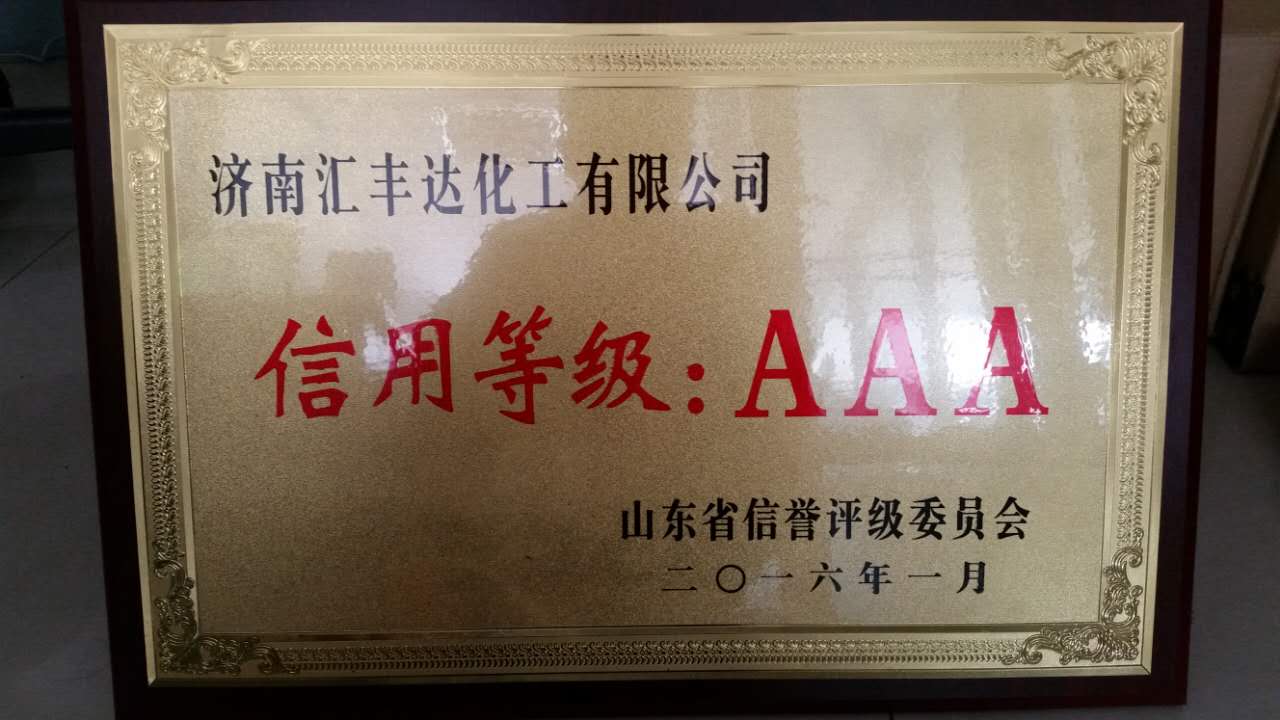 2016年1月7日,是公司成立10周年的喜慶日子。濟(jì)南匯豐達(dá)化工有限公司被山東省信譽(yù)評(píng)級(jí)委員會(huì)評(píng)為“信用等級(jí)AAA”企業(yè)。