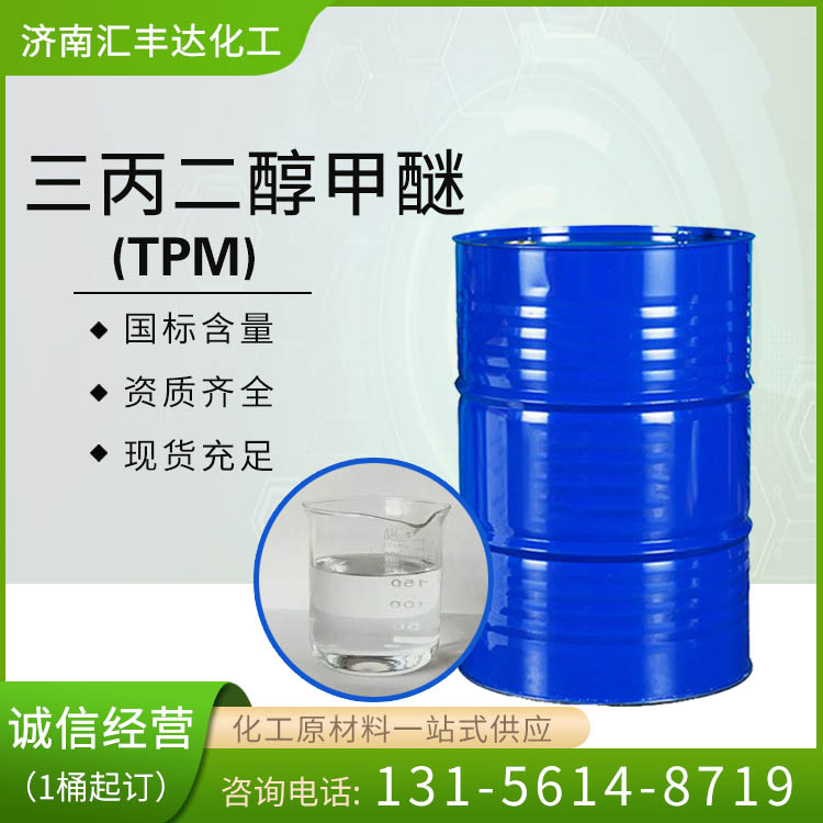三丙二醇甲醚(英文名稱Tripropyleneglycolmonomethylether簡稱TPM)又名三縮-1,2-丙二醇單甲醚,分子式C10H22O4,分子量206.28,它可完全水溶,并對眾多極性與非極性物質(zhì)有良好的溶解能力。蒸氣壓很低,揮發(fā)性很小,在一些情況下不被視為揮發(fā)性有機(jī)化合物,應(yīng)用行業(yè):1、涂料行業(yè)。可作為酸樹脂,無色粘稠穩(wěn)定的吸水性液體,幾乎無味無臭, 低毒。2、清洗劑。三丙二醇甲醚適合用于清洗劑,特別是要求極低揮發(fā)速度的體系中,如除蠟劑和地板清潔劑。是潤滑脂和油脂很好的偶合劑,可用作除漆劑和動(dòng)物油脂除去劑。3、油墨行業(yè)。使油墨毒性降低,改善操作環(huán)境,提高印刷質(zhì)量。